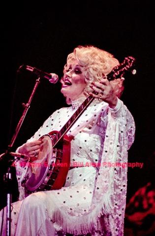 An amazing shot of Dolly playing the banjo and singing her favorite songs!